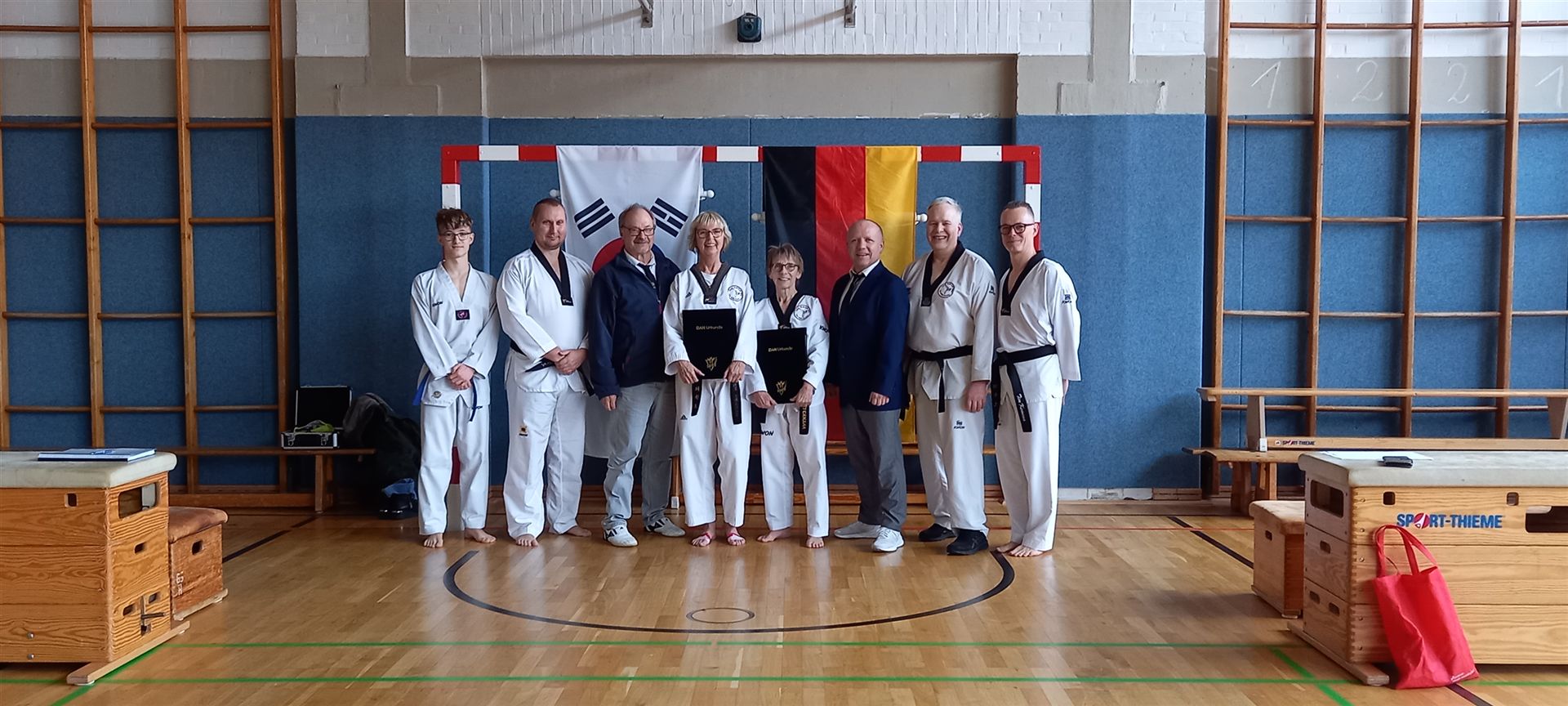 Neben Rainer Tobias als WTF Kampfrichter und NTU Technik Präsident, waren Vivian Ritthaler, Bianca Schönemeier als Jugendkader Trainer und von uns Paul Knauthe als NTU Co Landestrainer und 3 facher deutscher Meister Technik zugegen, um Trainingsmethodik, Ideen und Impulse an die Sportler und Trainer weiterzugeben.