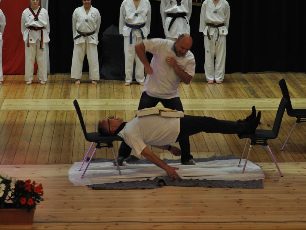 Als Prüfungsprogramm musste Wolfgang drei Formen (poomsae), einen Ein Schritte Kampf (ilbo Taeryon), eine Selbstverteidigungs - Demonstration gegen drei Gegner und einen Spezial- Bruchtest vorführen.