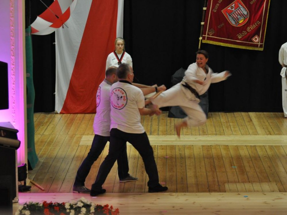 Der Ji-Do-Kwan Wunstorf unter der Leitung von Heidi Reh und Markus Mroch, konnten eine tolle 3-fach Turnhalle mit super Trainingsbedingungen anbieten. Nach Aufteilung in verschiedene Leistungsgruppen, wurde an den Stellungen der Arme und Beine gefeilt und die Formen bis hoch zur 13. Poomsae geübt.