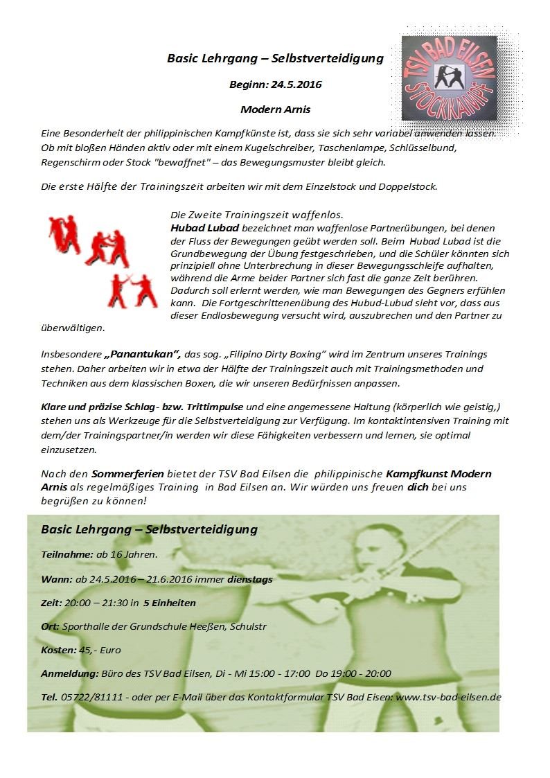 Alsdann folgt ein Modern Arnis Lehrgang mit anschließender Prüfung mit Peter Rutkowski (4.Dan Modern Arnis) am 20.5.17