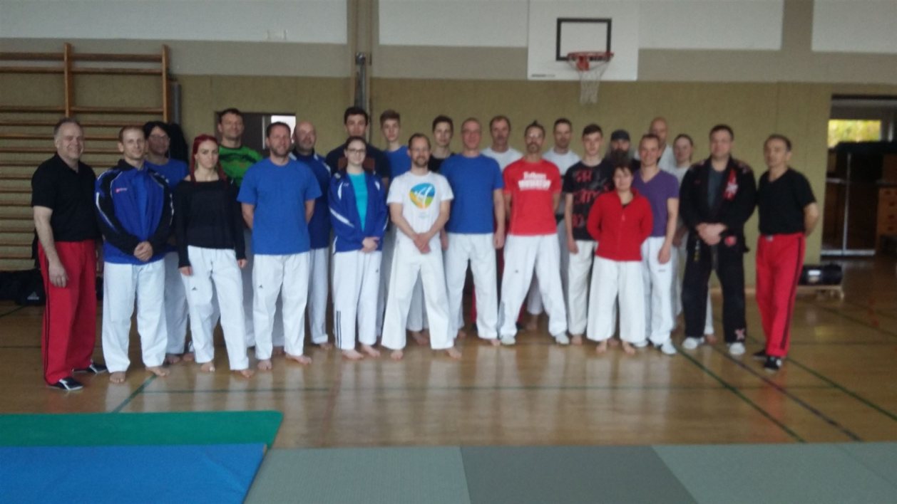 Als Referent hat uns Reiner Lange (2.Dan Jujutsu und 3. Dan Taekwondo, 2. v.r.) das richtige Fallen und Abrollen , Wurf- und Hebeltechniken demonstriert und üben lassen. Branko (Trainer der Modern Arnis Sparte) und Stefan (Sportwart) konnten 21 Sportler begrüßen, die sich begeistert an die Übungen führen ließen.