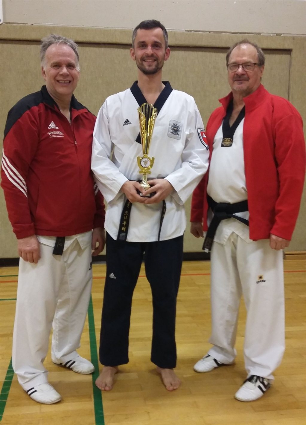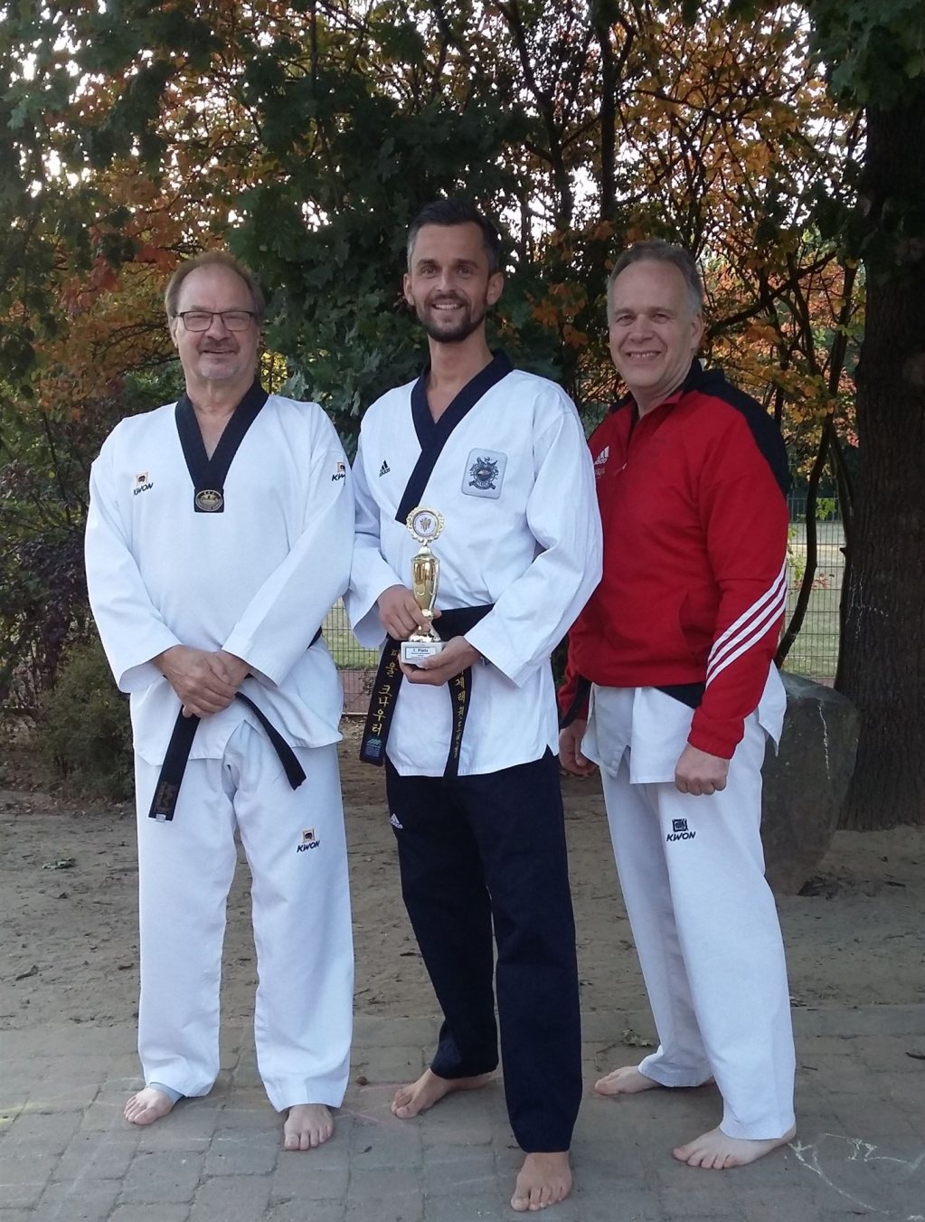 Bei der diesjährigen Landesdanprüfung im Taekwondo, stellte sich unser Trainer Wolfgang Falke, nach über 20 Jahren der Prüfungskommission, bestehend aus dem Prüferteam unter Vorsitz von Karl-Heinz Oventrop (8.Dan), Werner Unland (7.Dan) und Frank Strasdat (6. Dan).