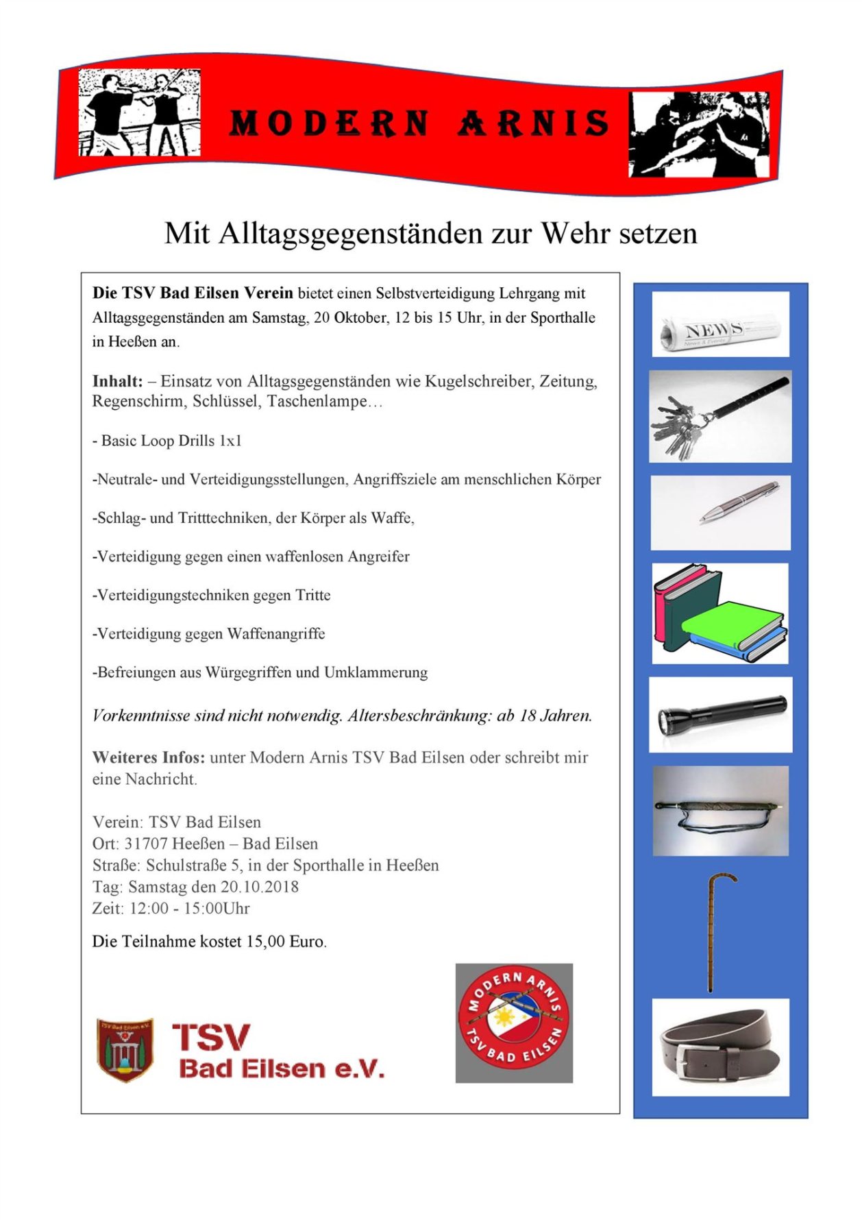 Das Thema ist: "Selbstverteidigung unter Verwendung von Alltagsgegenständen"