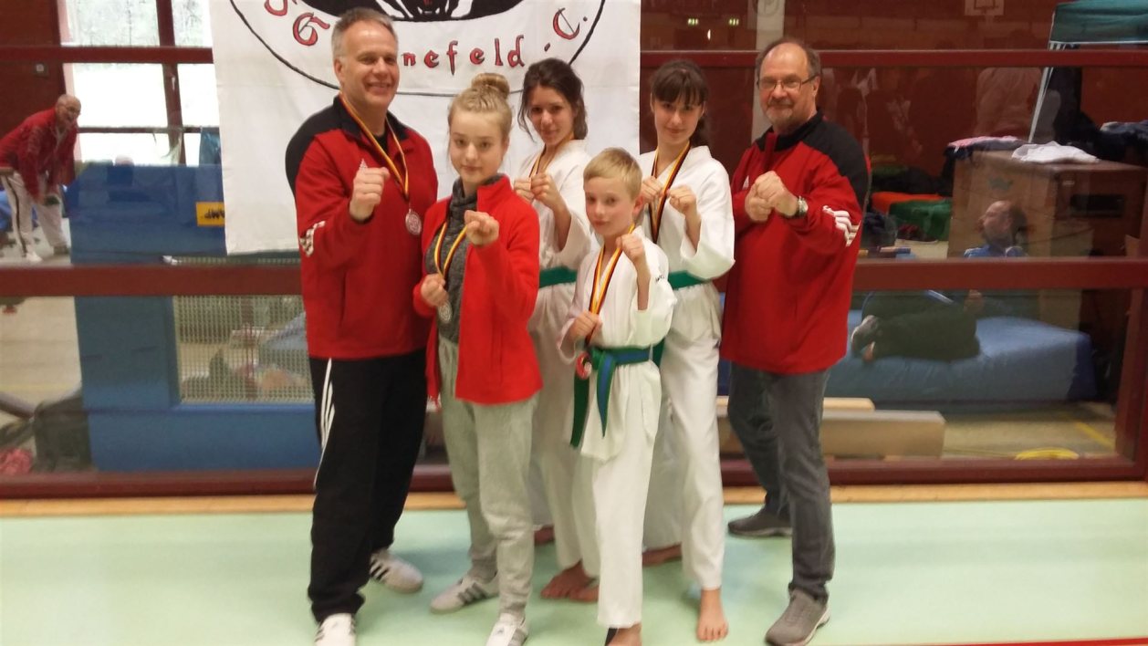 Im Bereich Formenlauf Einzel errangen Jette Jorritsma den 1. Platz, Lea - Marie Mielke den 3. Platz, Lukas Sauerhering und Maylin Winkelhake kamen unter die ersten 8 Sportler