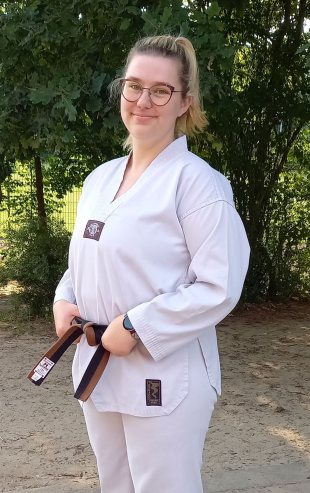 1. Kup, Trainerin für Kinder und Erwachsene. Vereinskader Mitglied für den Poomsae Bereich.